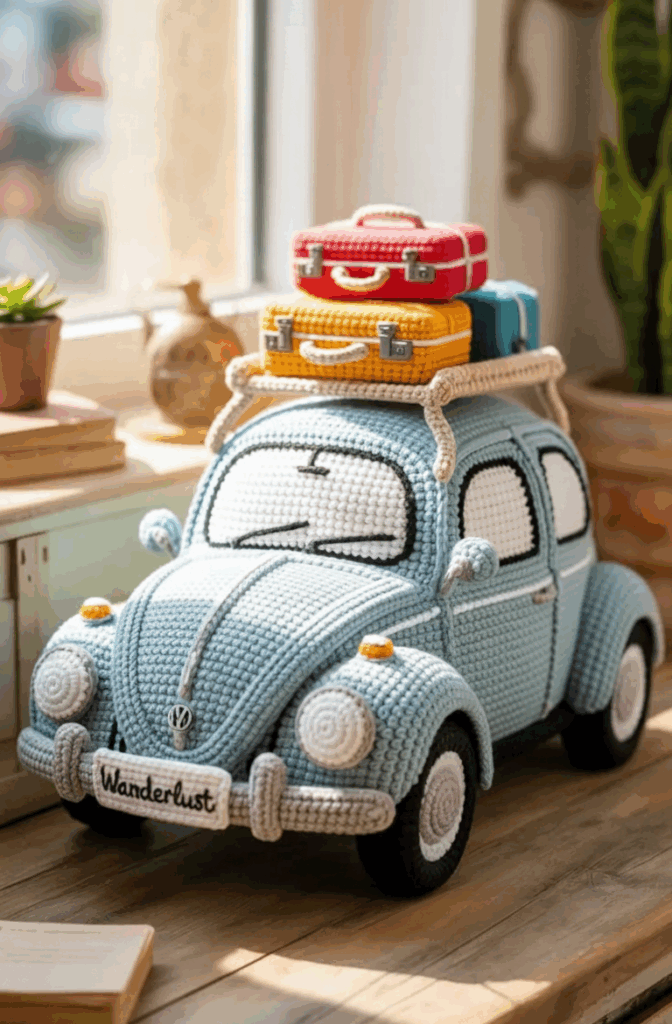 As part of the broader universe of amigurumi, the Amigurumi Wanderlust Car With Suitcases Pattern also reflects the growing popularity of miniature crochet art. Amigurumi has evolved from simple animal figures to complex themed designs with accessories and expressive details. This particular pattern perfectly fits into that evolution by merging a strong visual concept with technical crochet structure, creating a project that is rewarding from start to finish and highly appealing for SEO-focused content in the handmade and DIY niche.