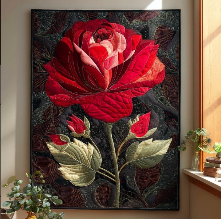 Once the rose motif is complete, attach it to the background fabric. Centering the rose properly ensures that the finished quilt looks balanced and visually appealing. You can secure the motif using appliqué techniques, which allow for a cleaner transition between the rose and the background.